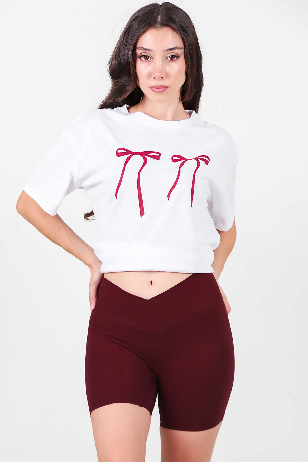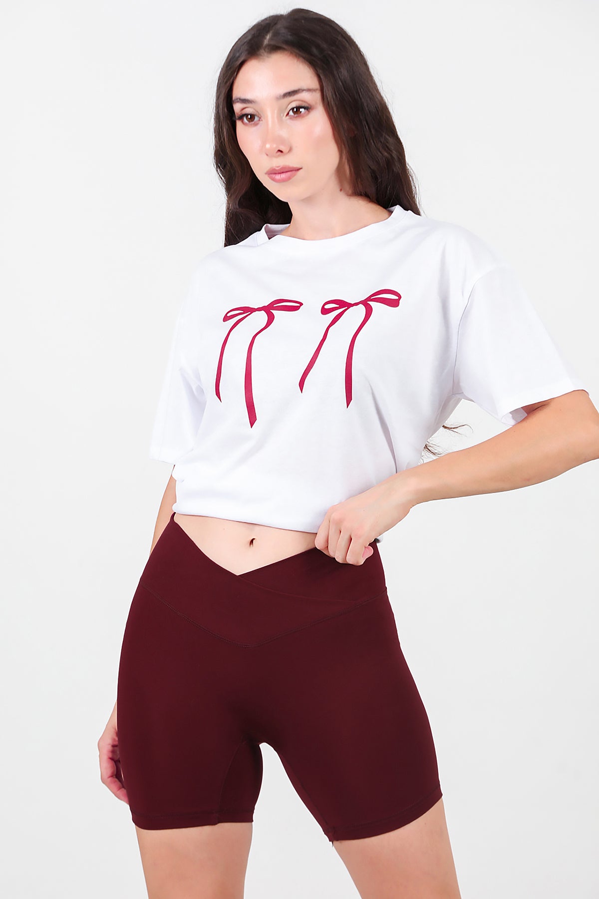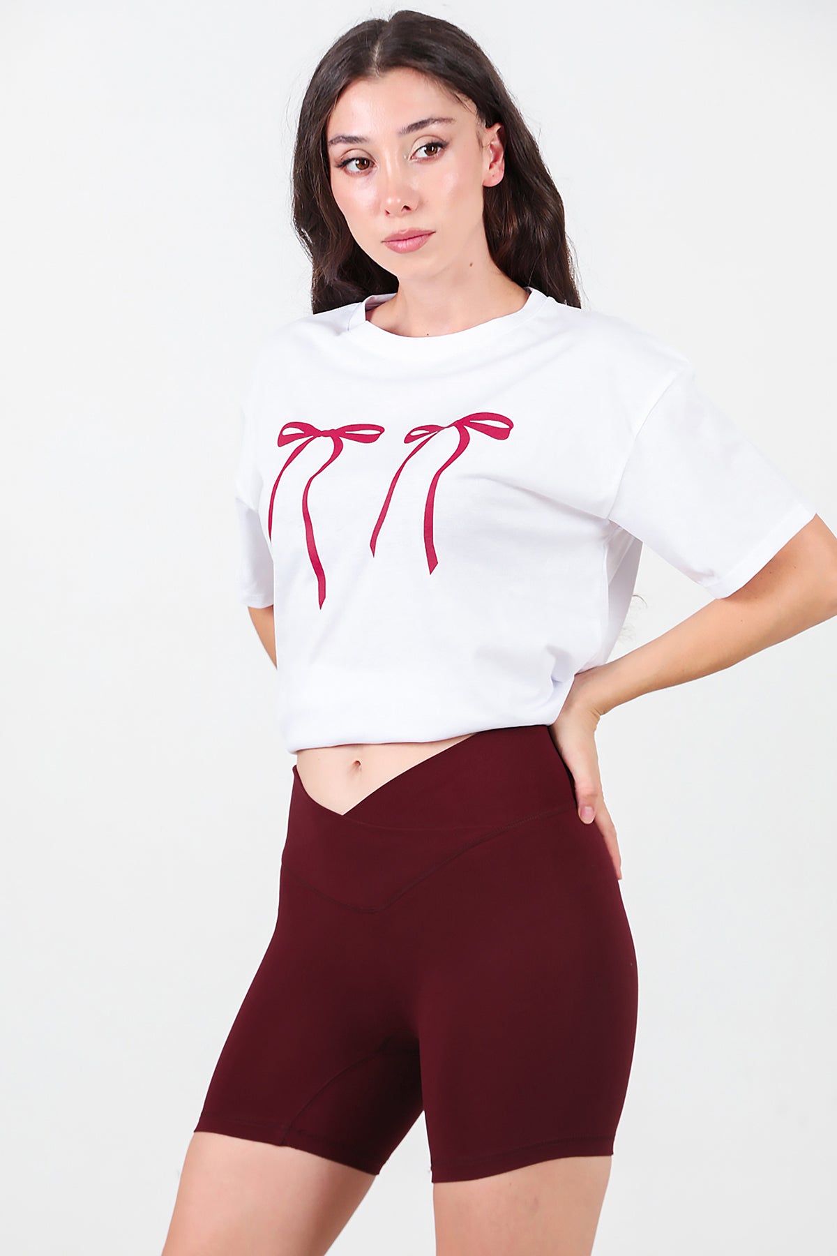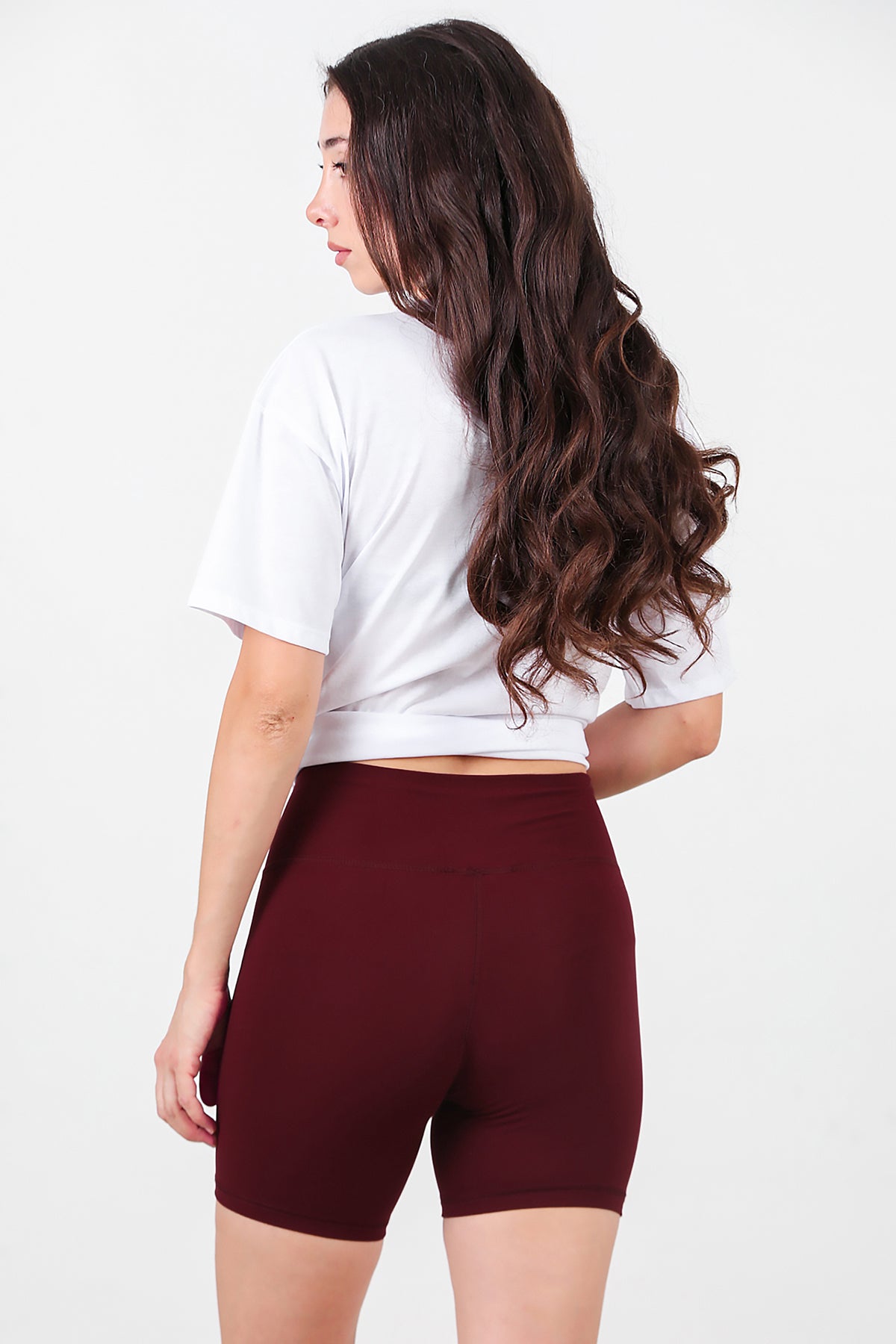 Kadın Yüksek Bel Çapraz Lastikli Şort Bordo