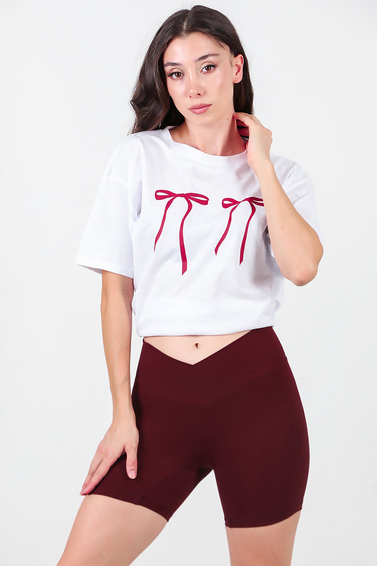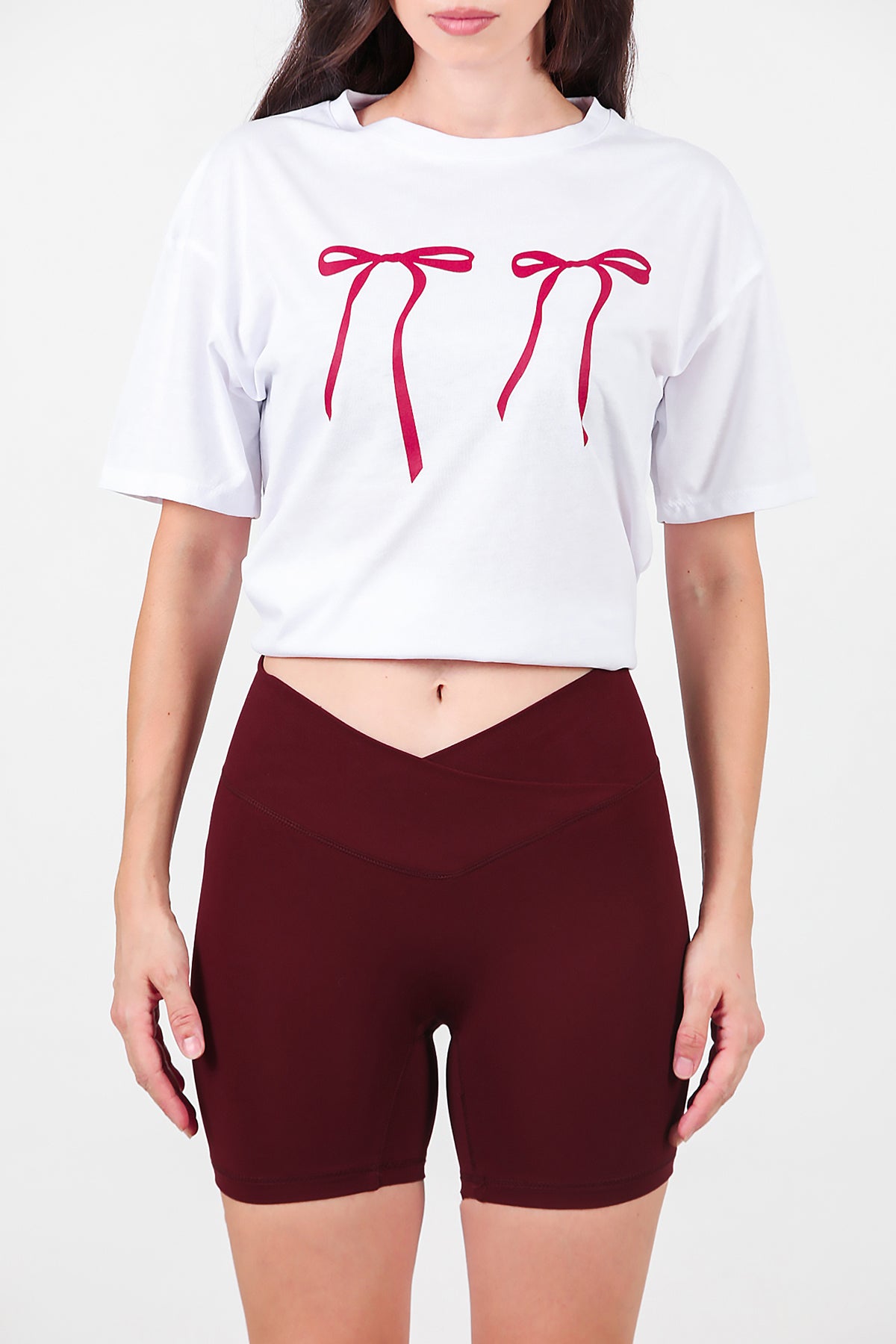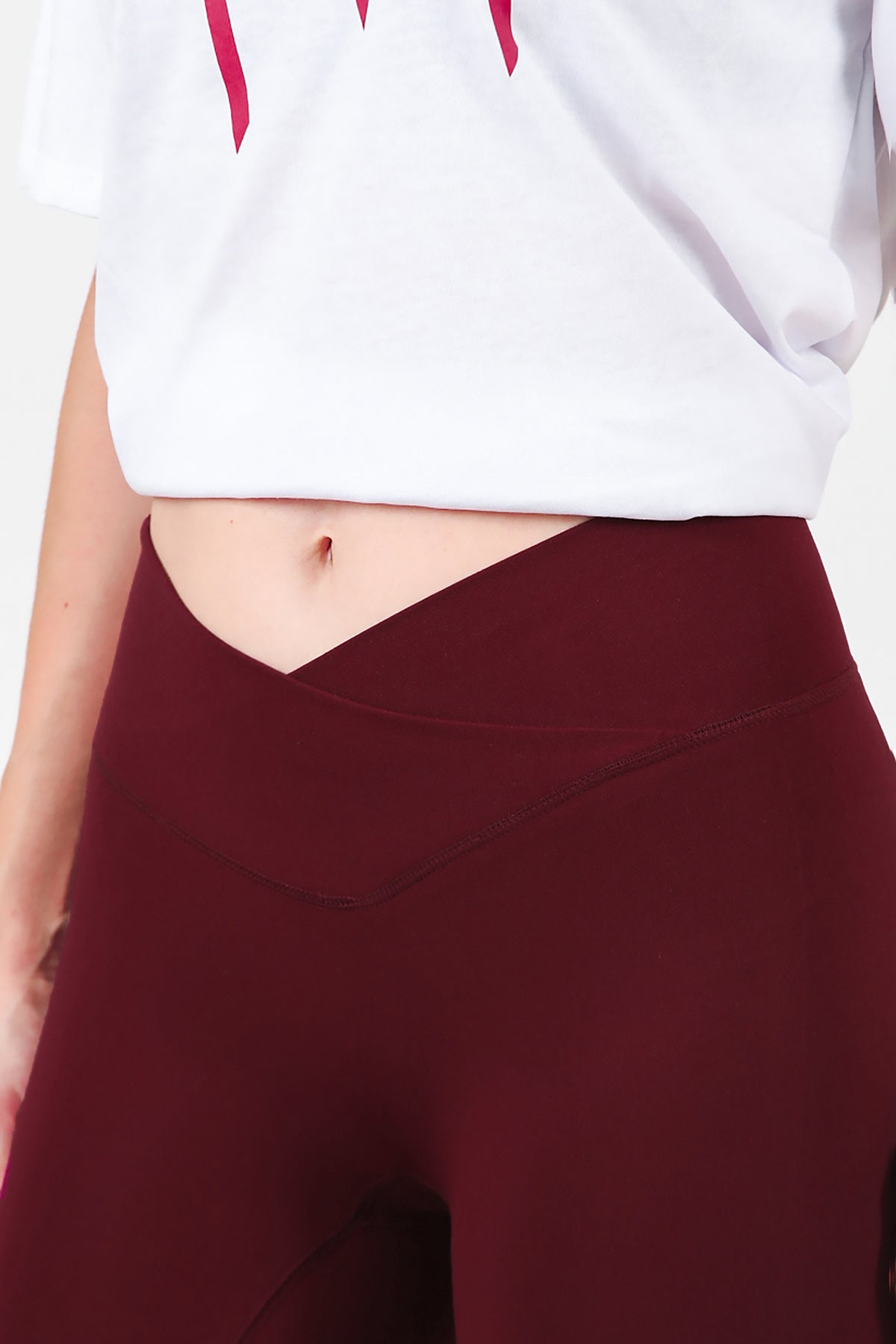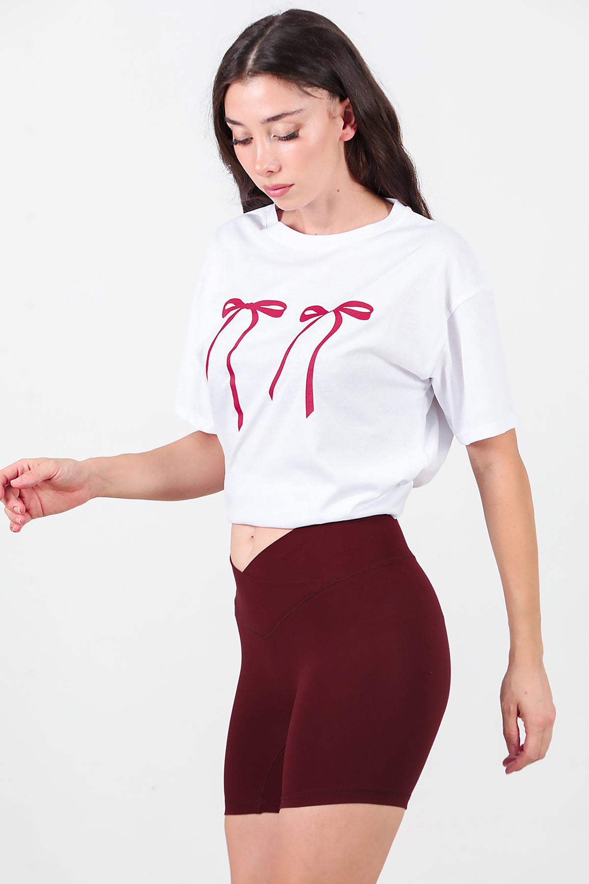 Kadın Yüksek Bel Çapraz Lastikli Şort Bordo