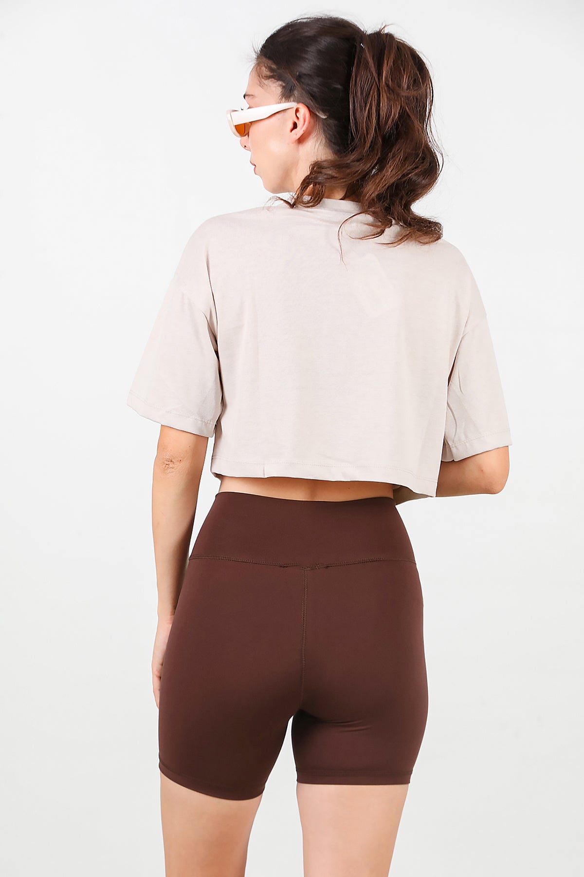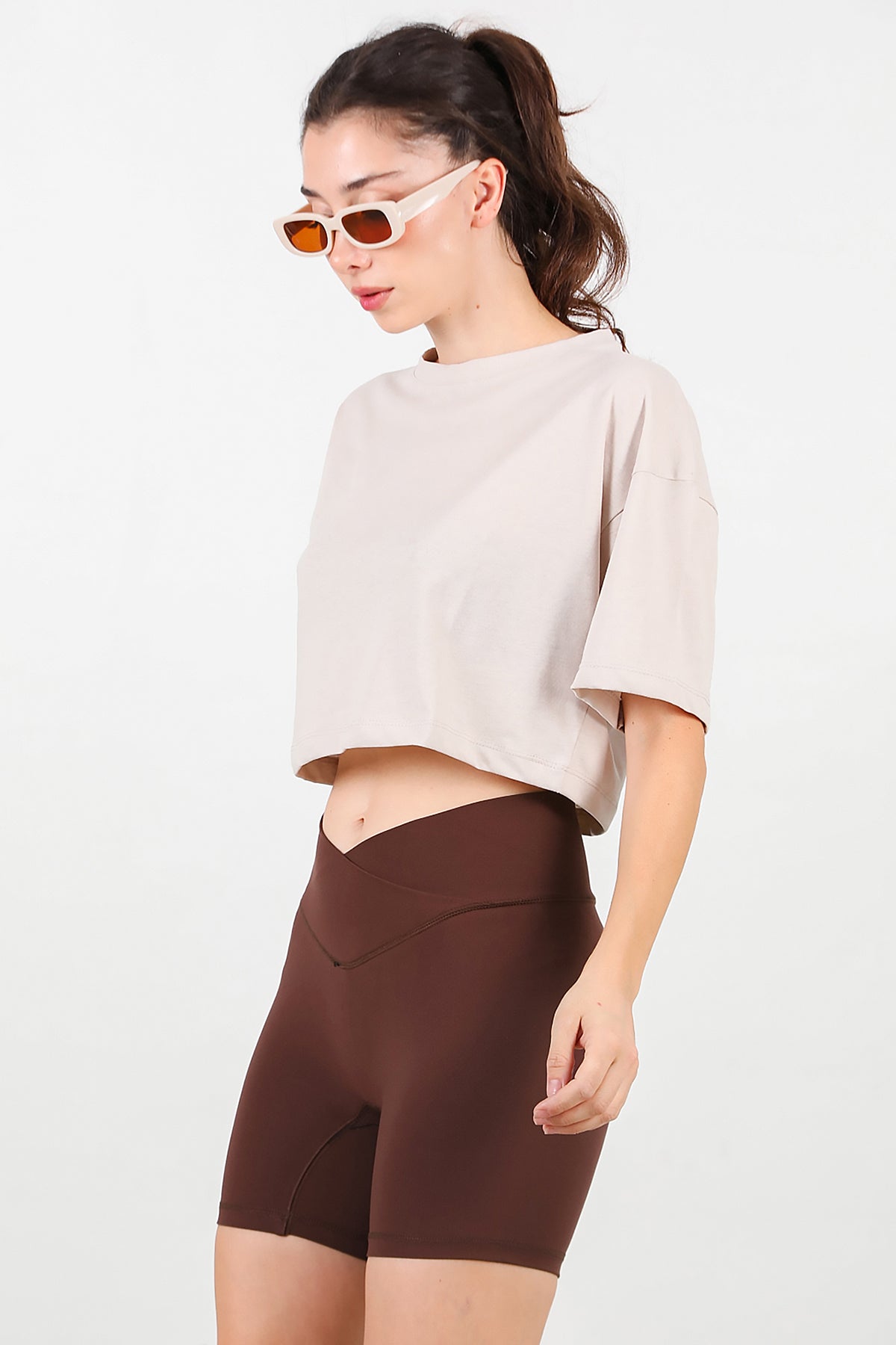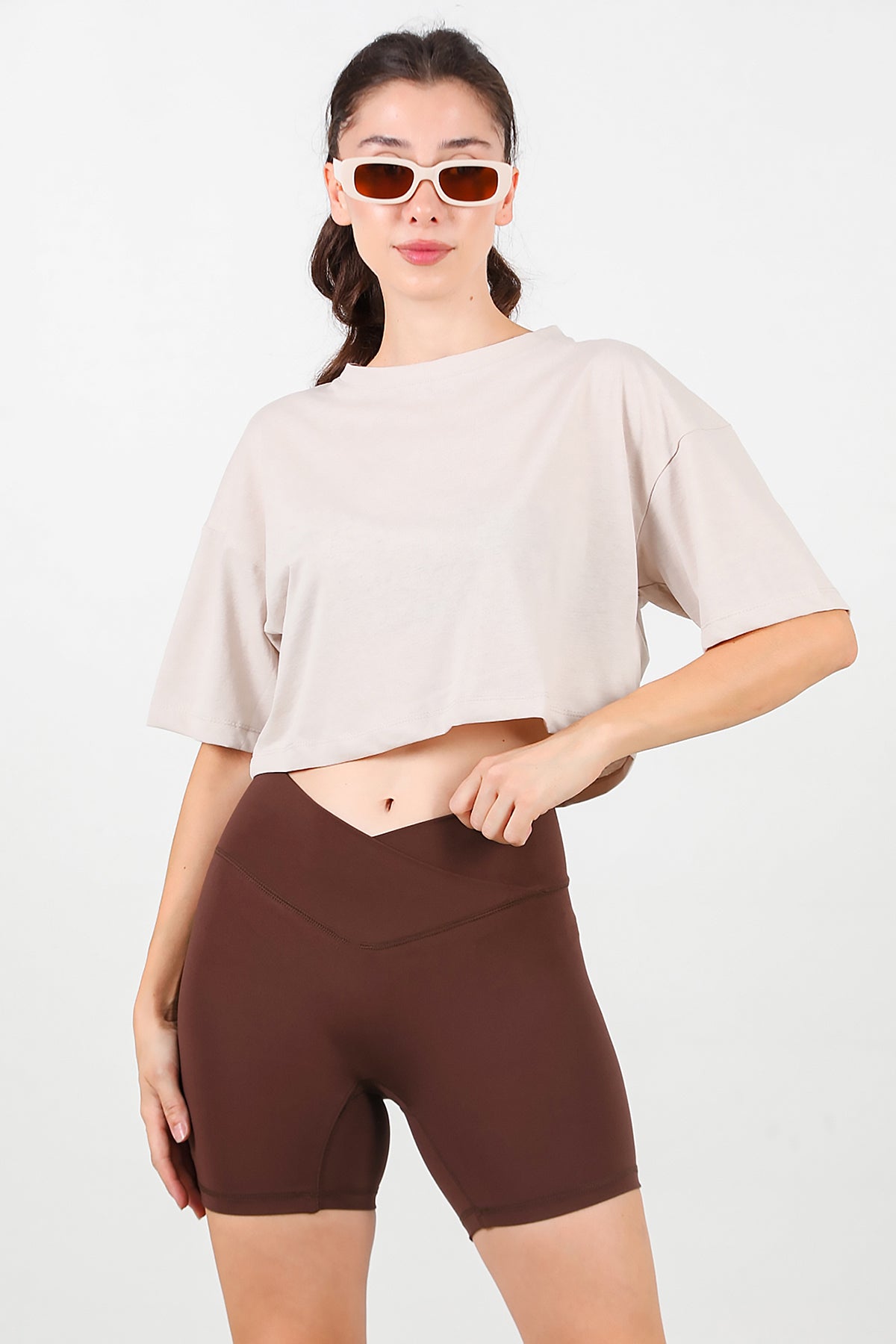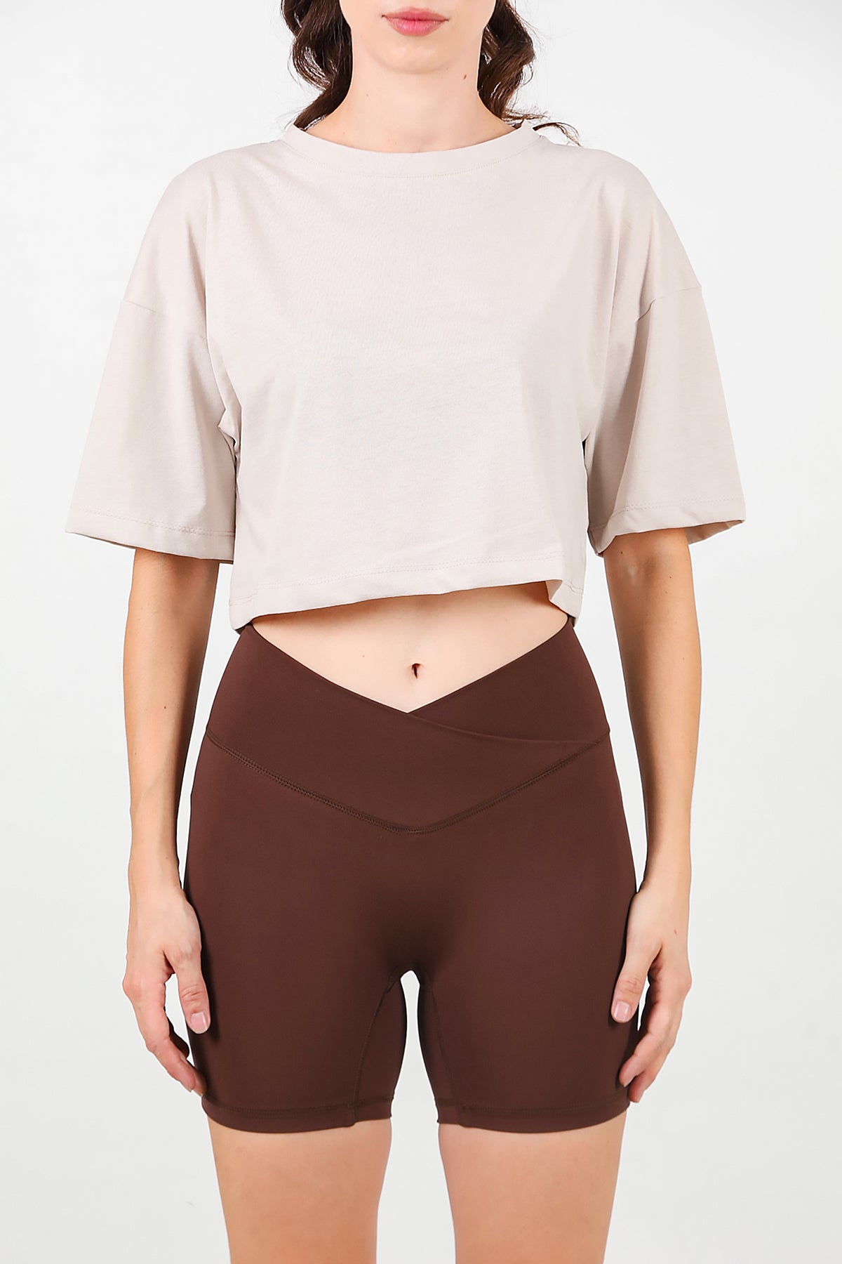 Kadın Yüksek Bel Çapraz Lastikli Şort Kahverengi