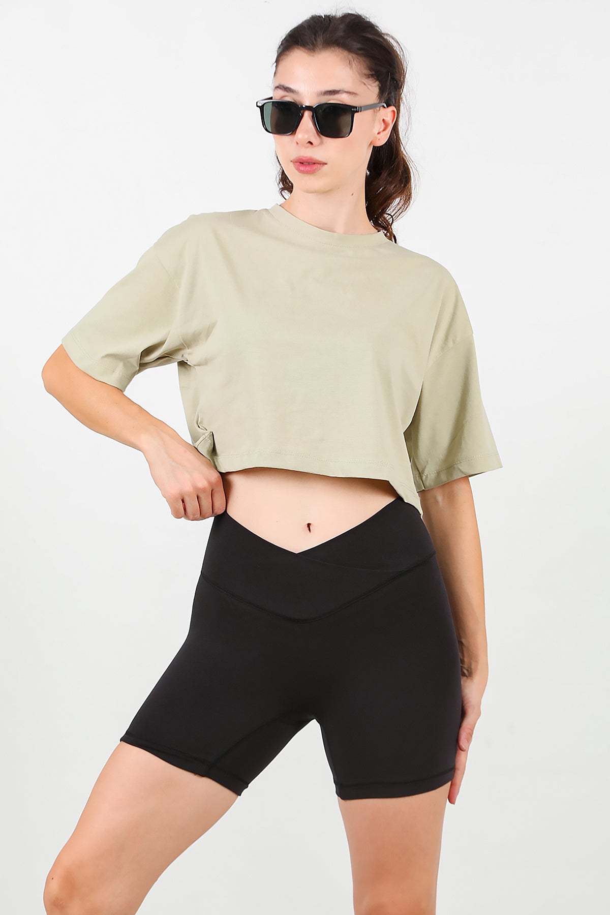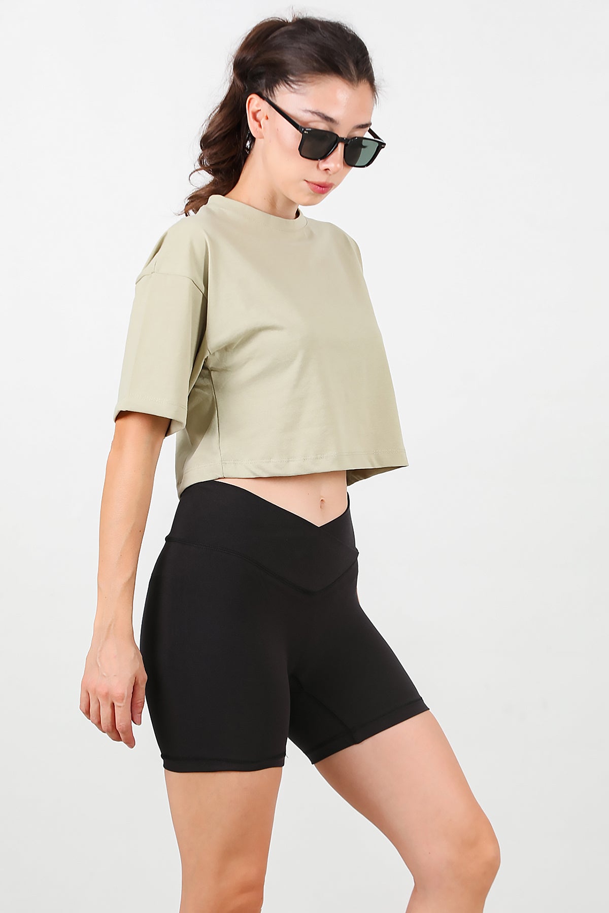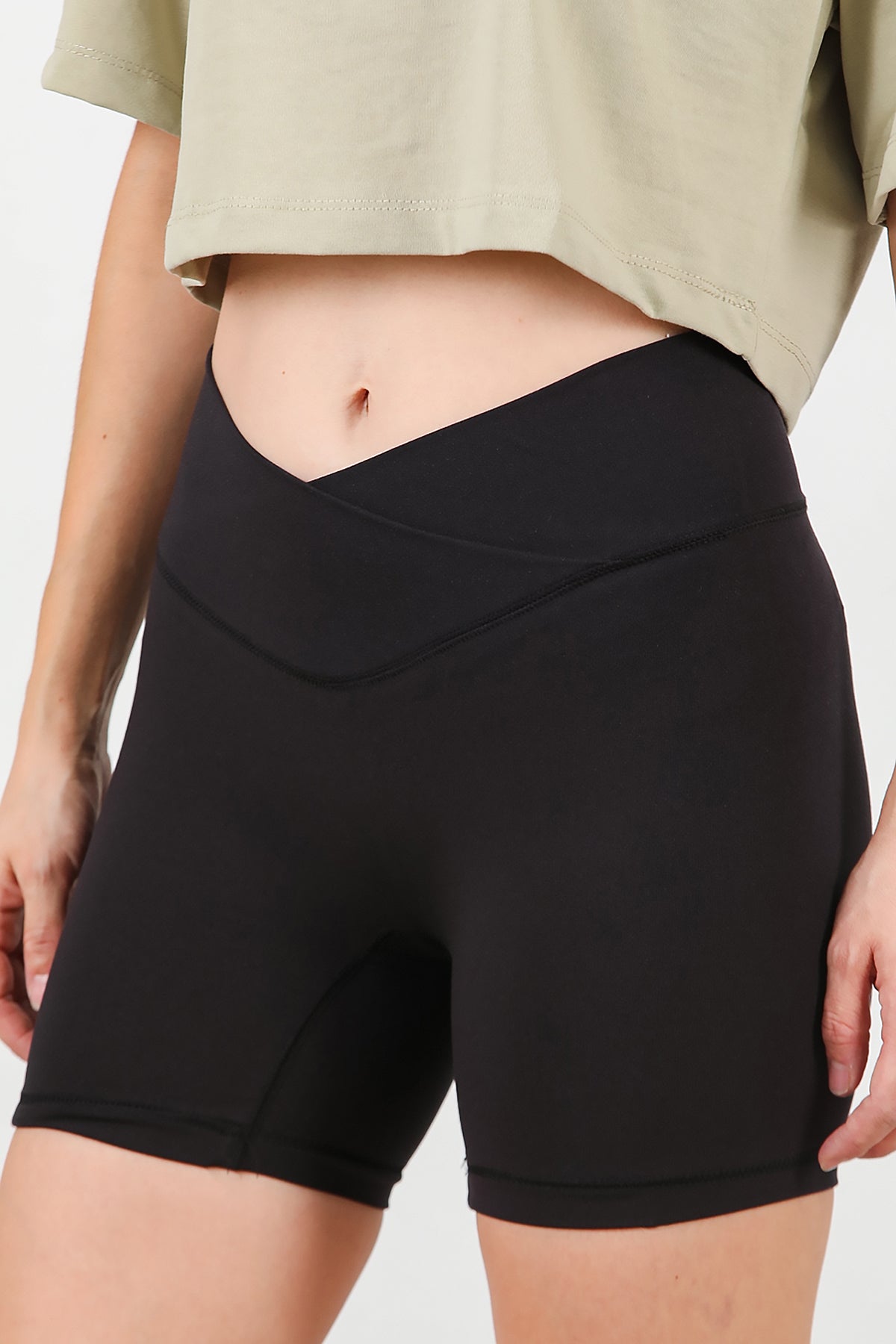 Kadın Yüksek Bel Çapraz Lastikli Şort Siyah