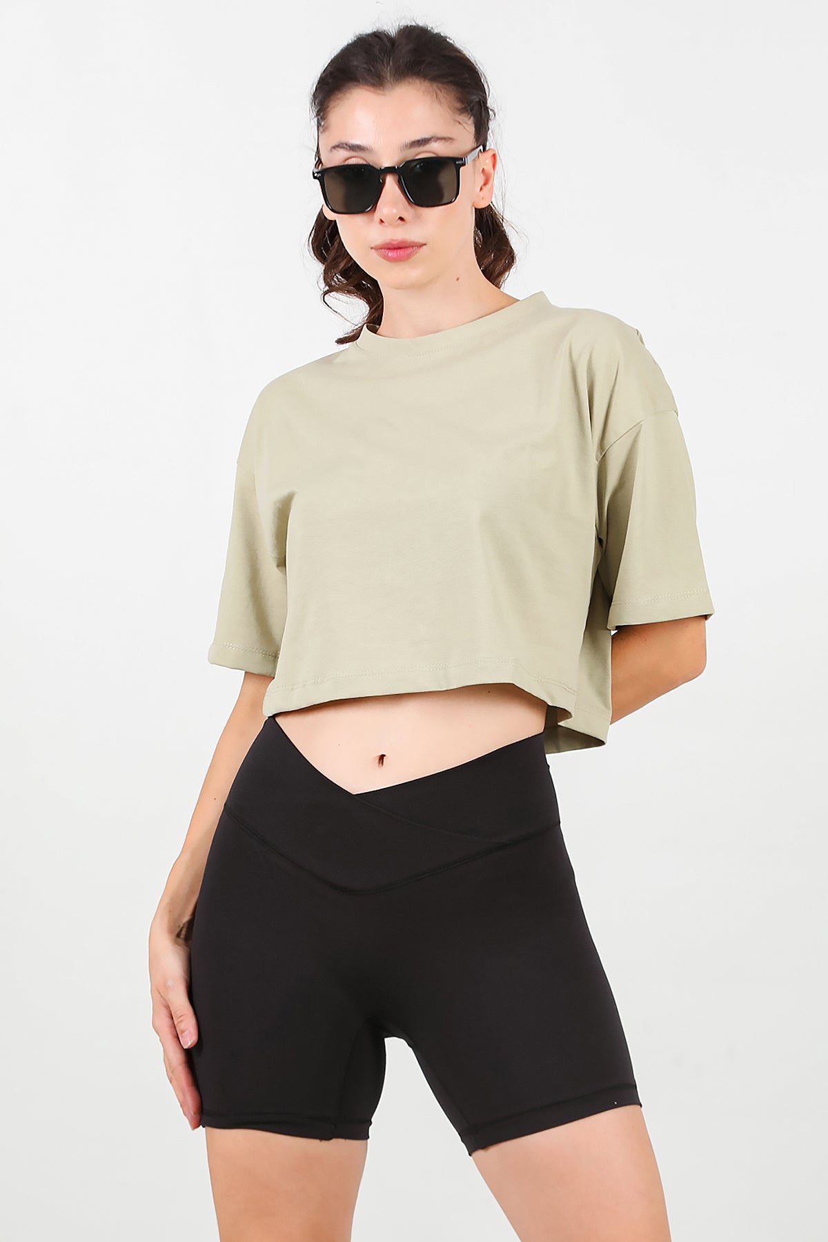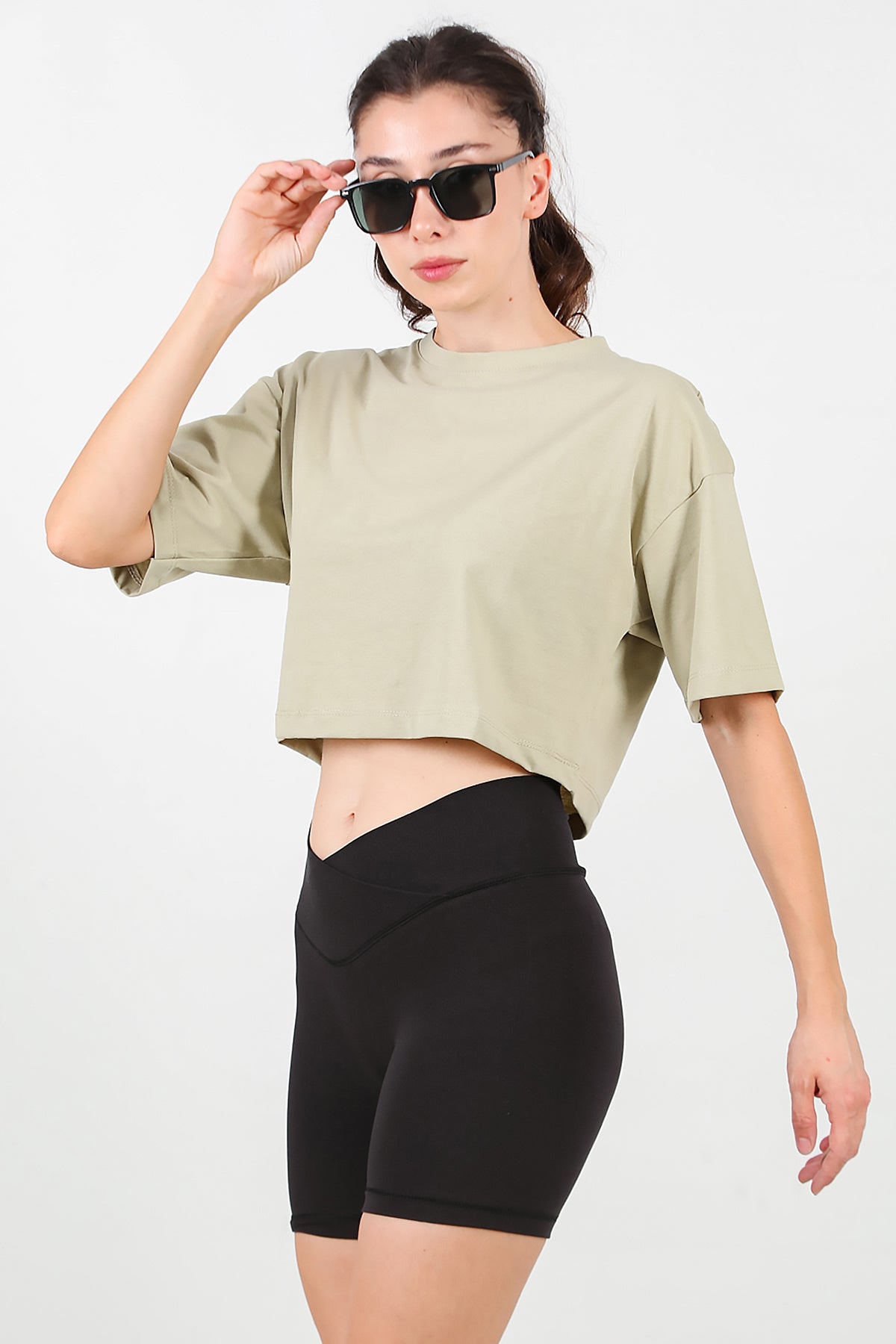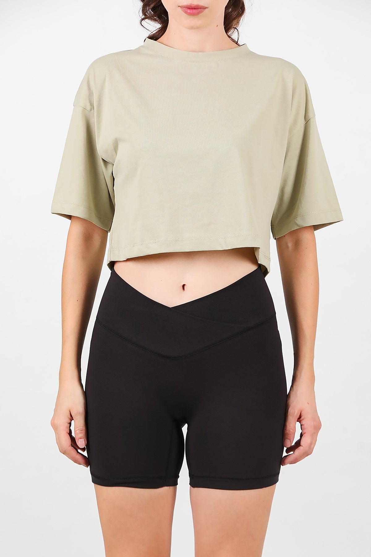 Kadın Yüksek Bel Çapraz Lastikli Şort Siyah