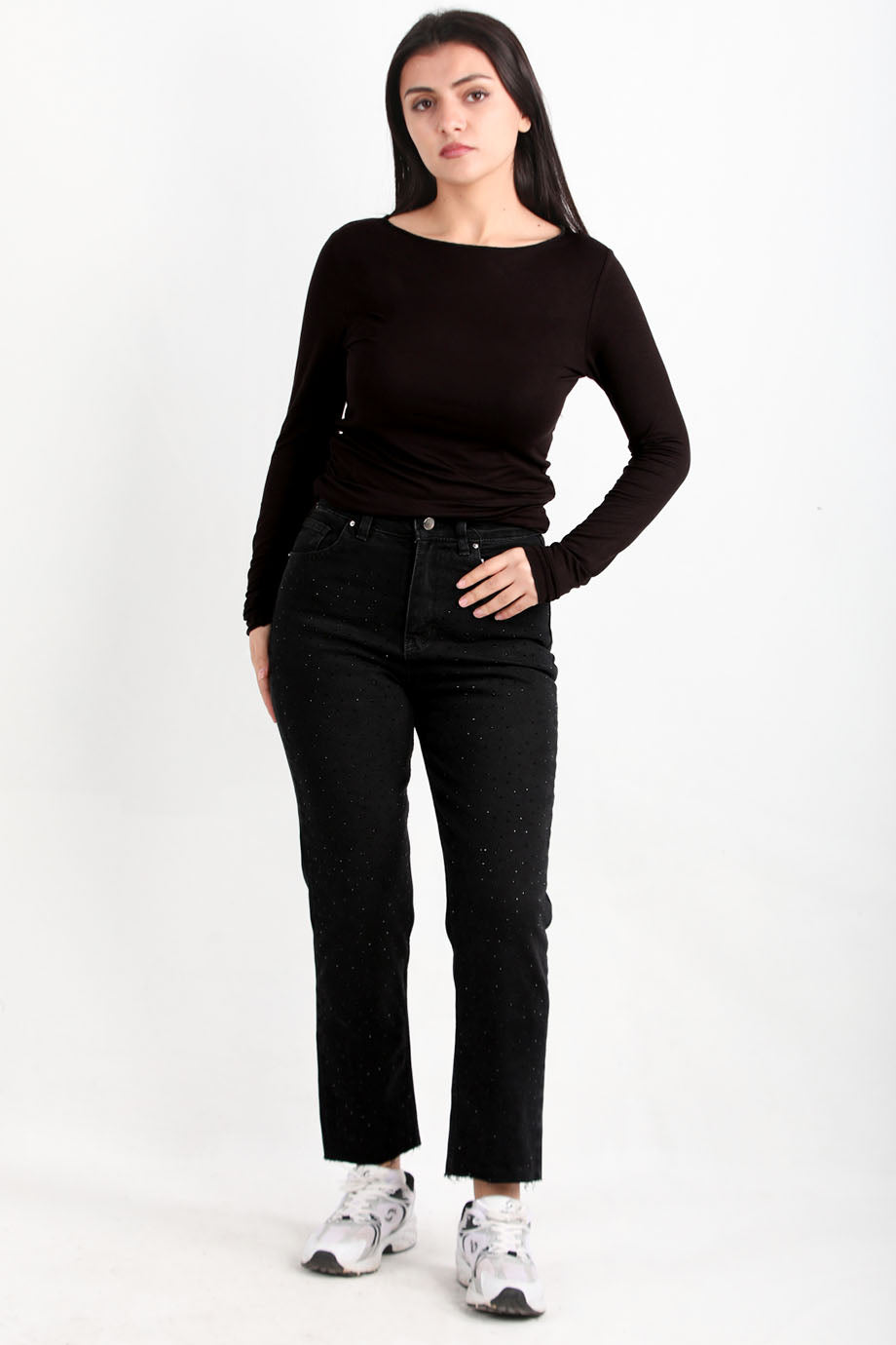 Noircrepe Kadın Yüksek Bel Krep Pantolon Siyah
