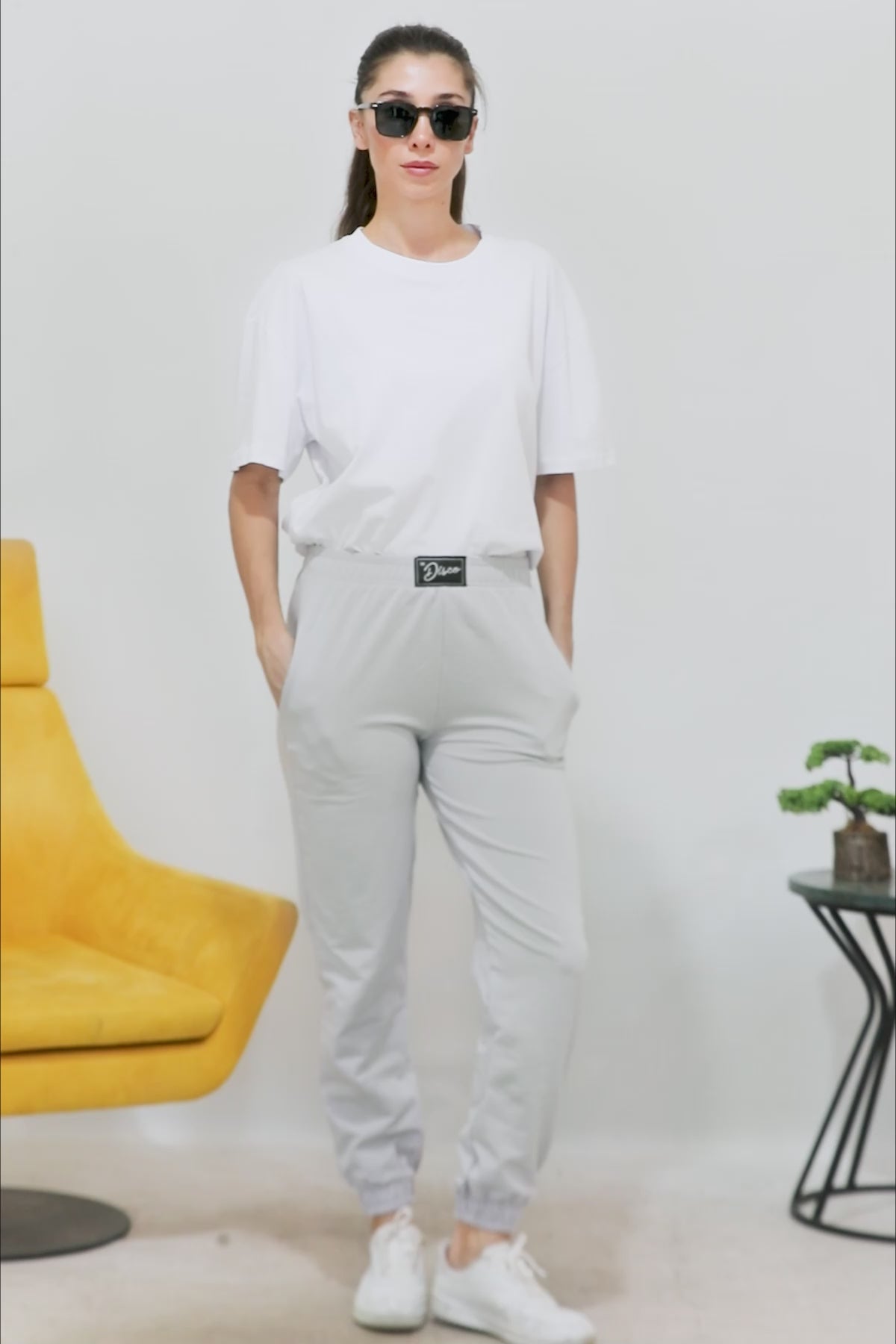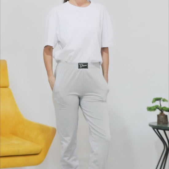 Kadın Yüksek Bel Lastikli Eşofman Gri