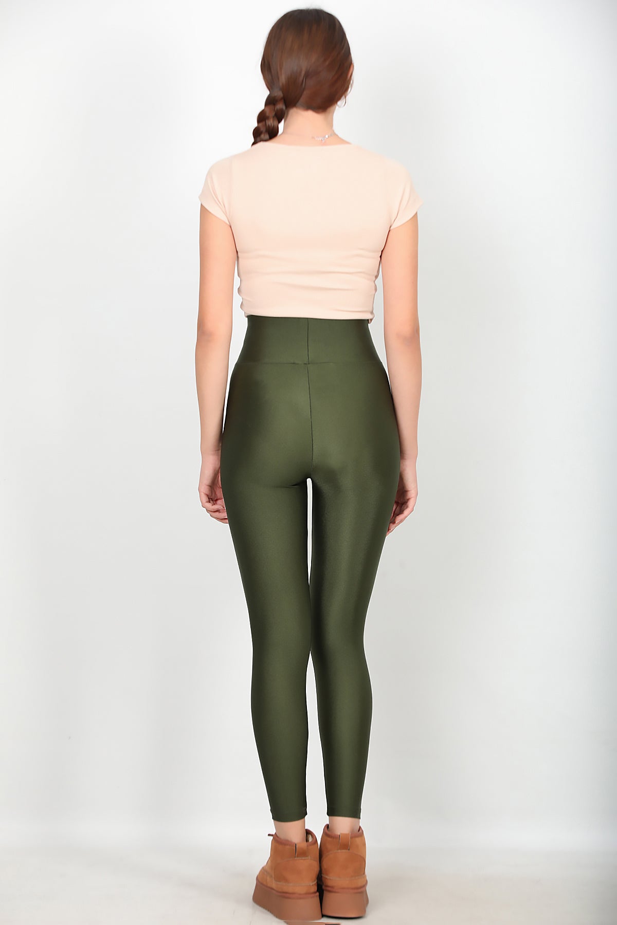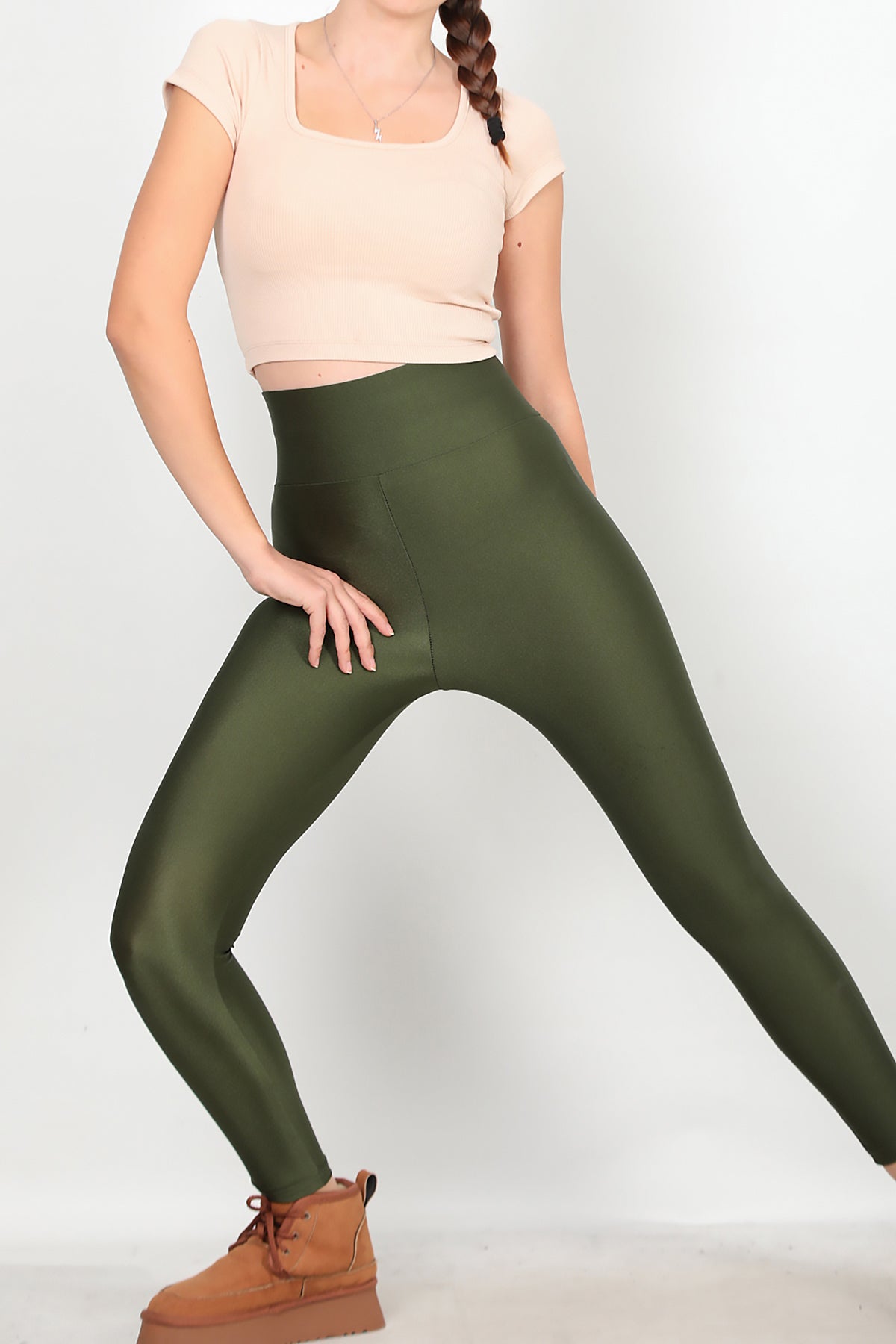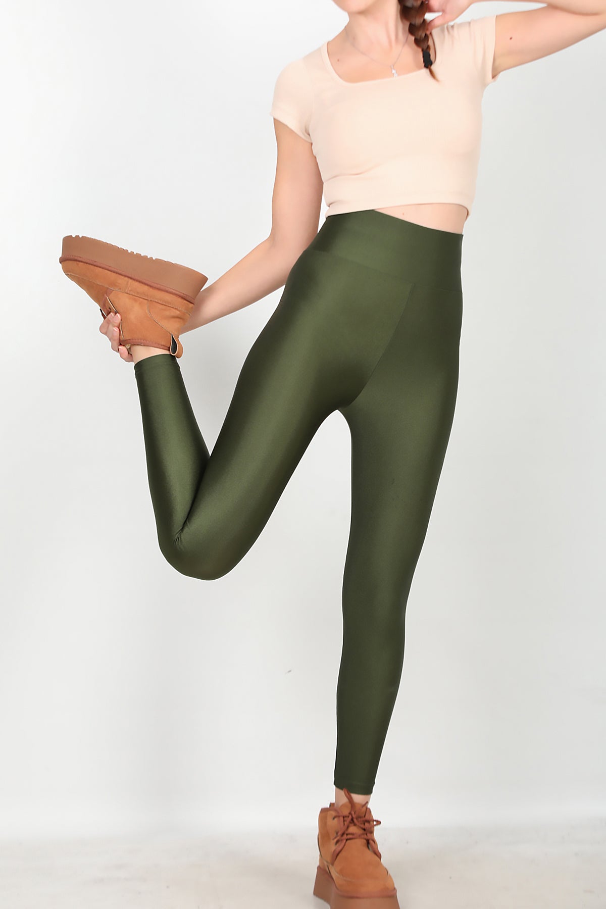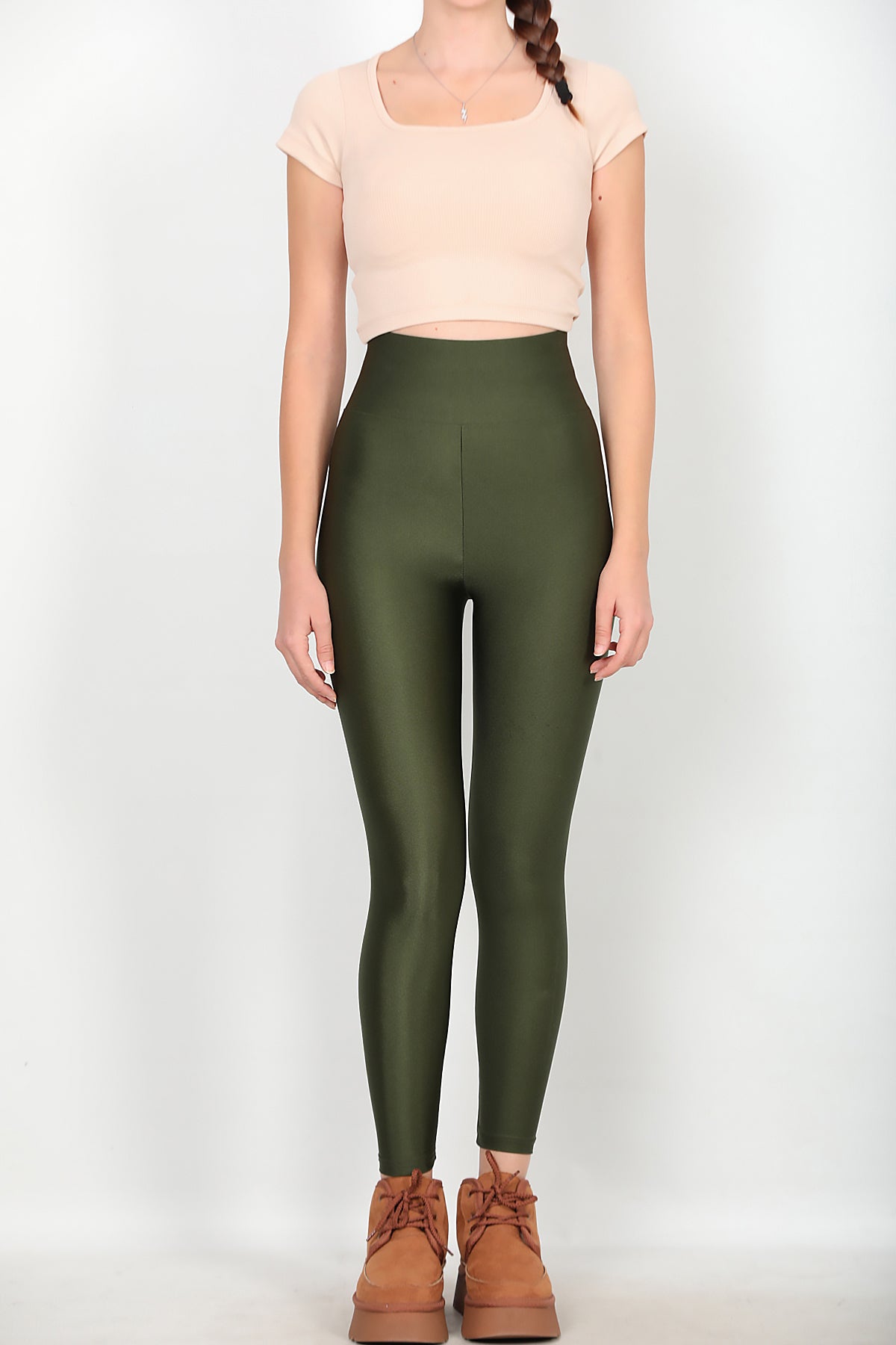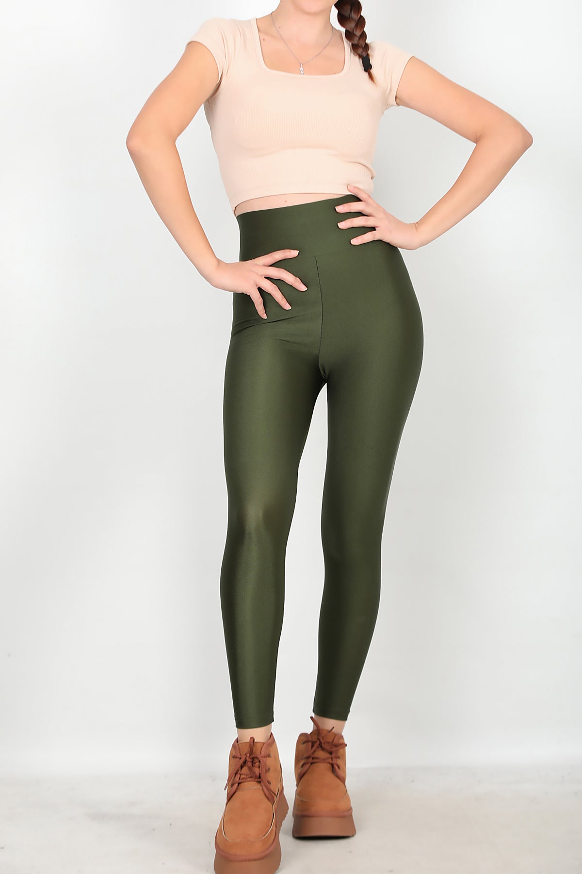 Kadın Yüksek Bel Parlak Tayt Yeşil